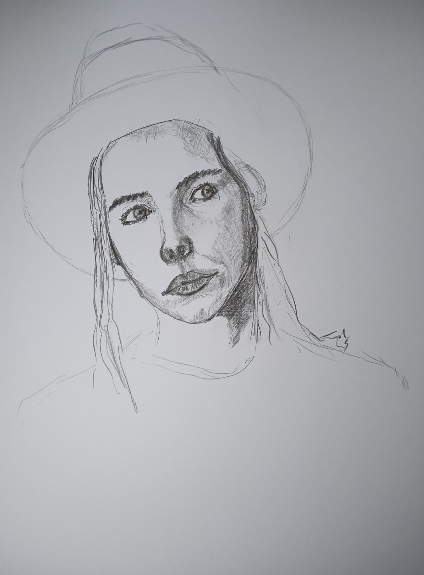 Dáma v roláku (podle E. Maneta), tužka, 2024, 70x50 cm, 900 Kč