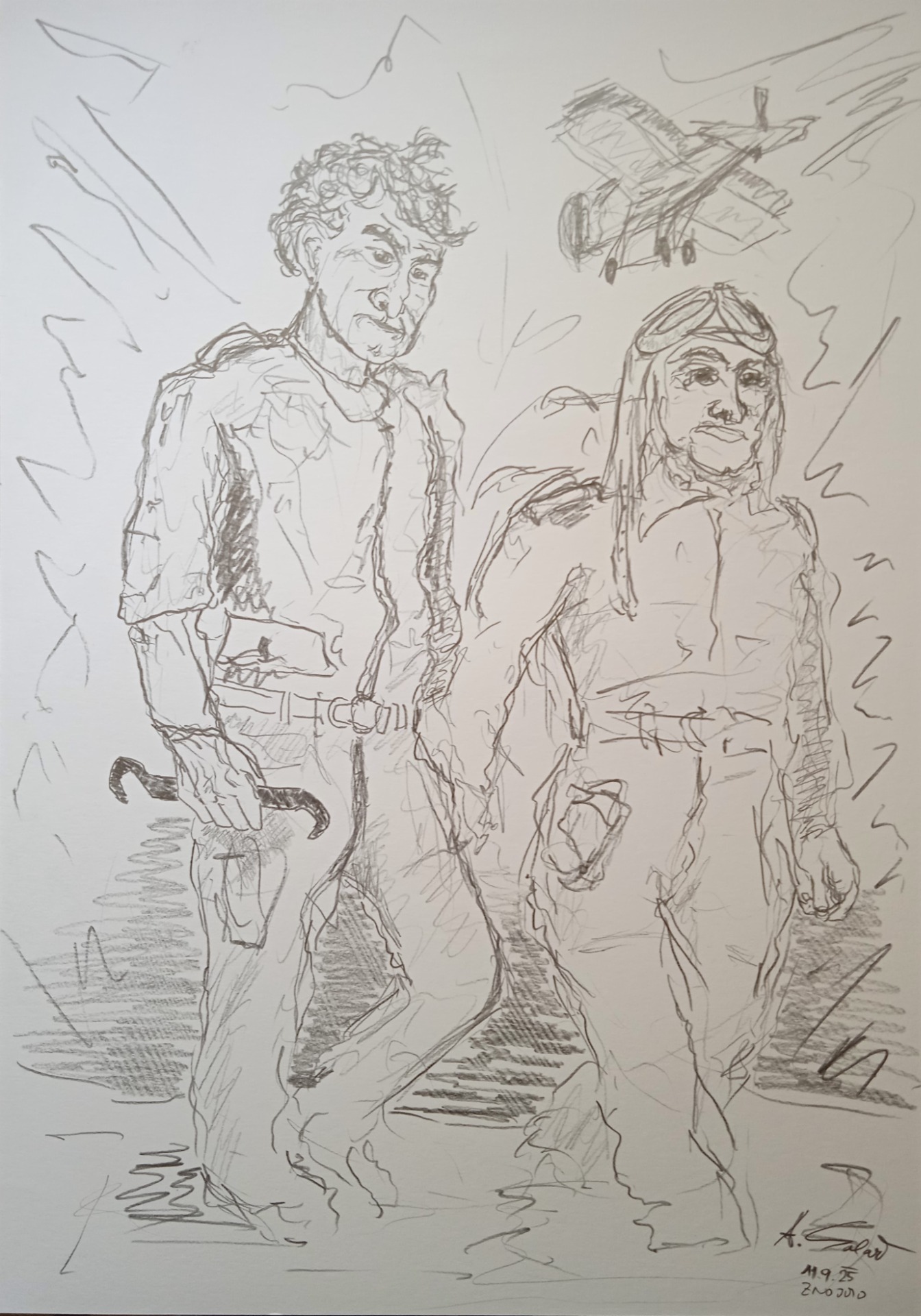 Invaze v 7.30.., tužka, 2024, 70x50 cm, 1 110 Kč