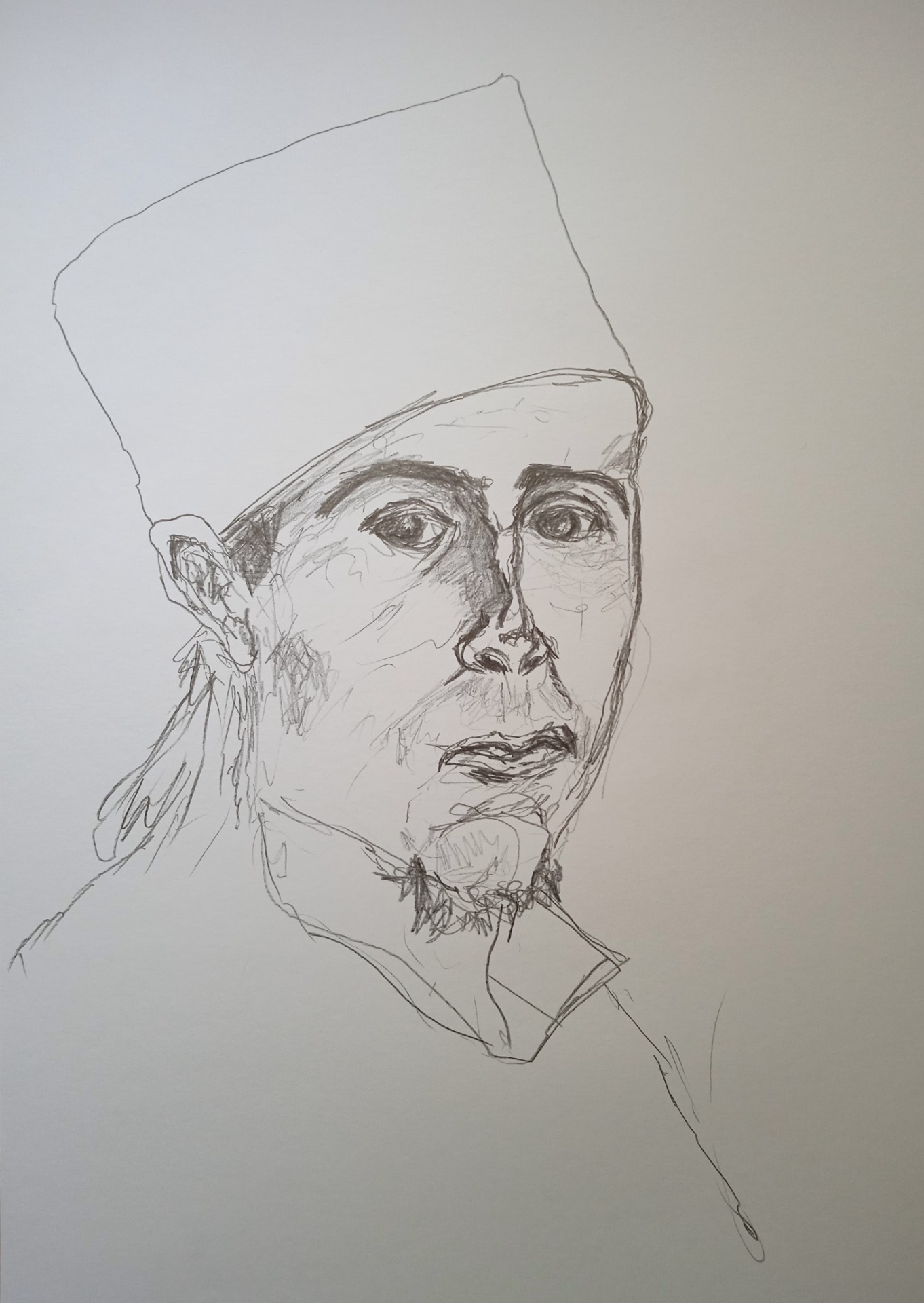Poprsí muže v orientálním oděvu (podle Rembrandta H. van Rijna); tužka, křída v tužce, pastelka); 2021; 70x50 cm; prodáno