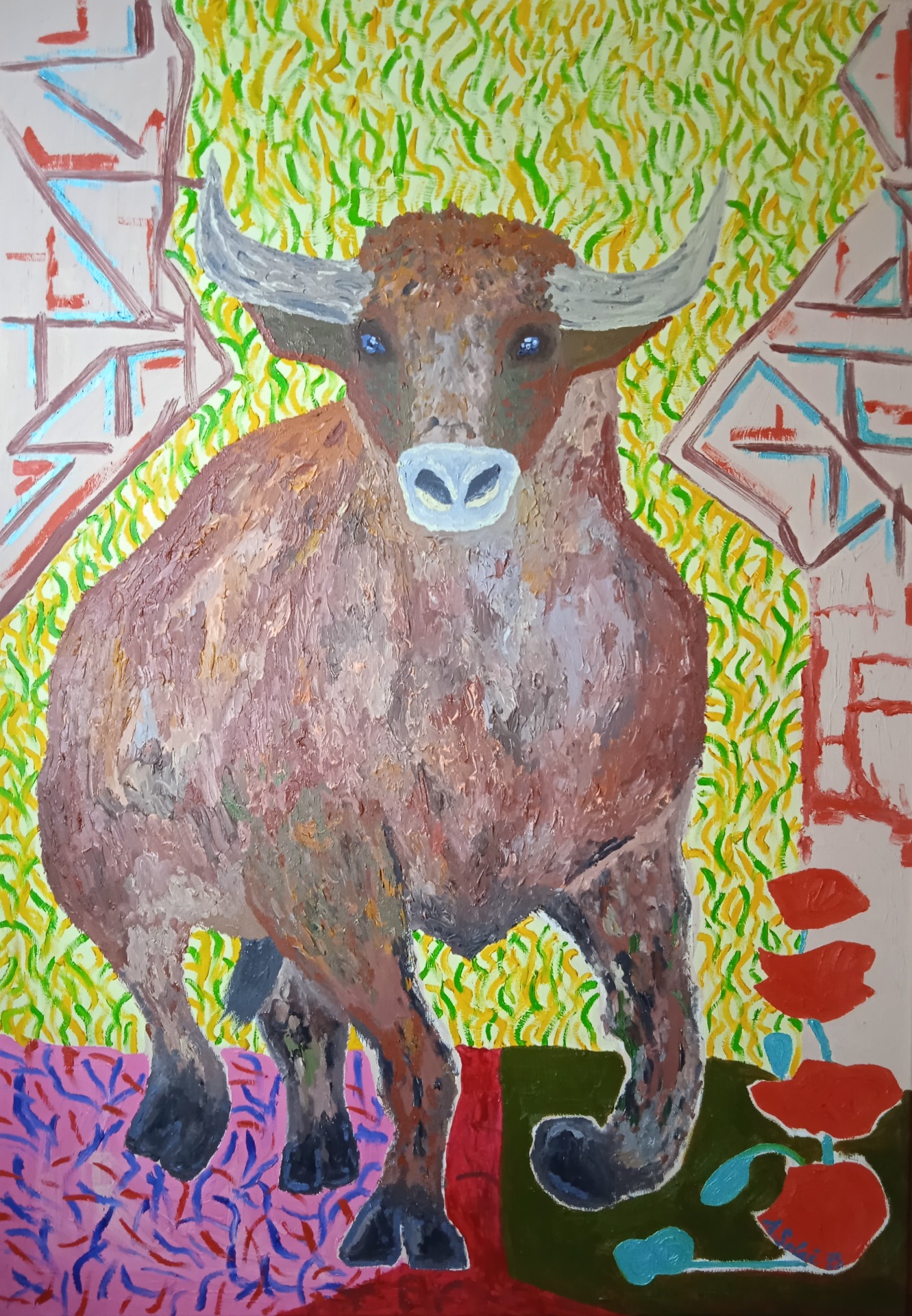 Býk, olejové barvy, 2025, 100x70 cm, 10 300 Kč