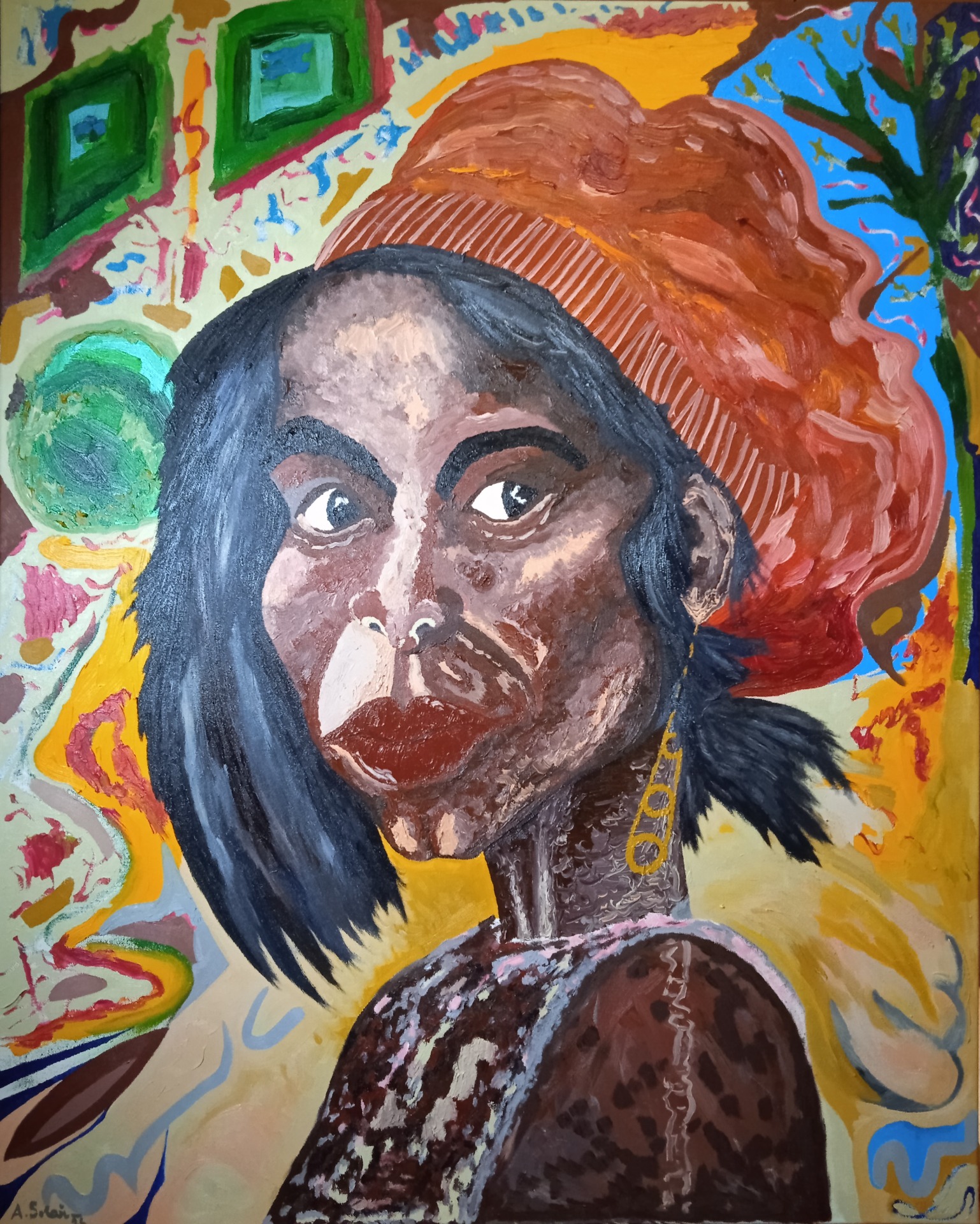 Autoportrét s červeným obličejem, olejové barvy, 2023, 80x80 cm, 3 500 Kč