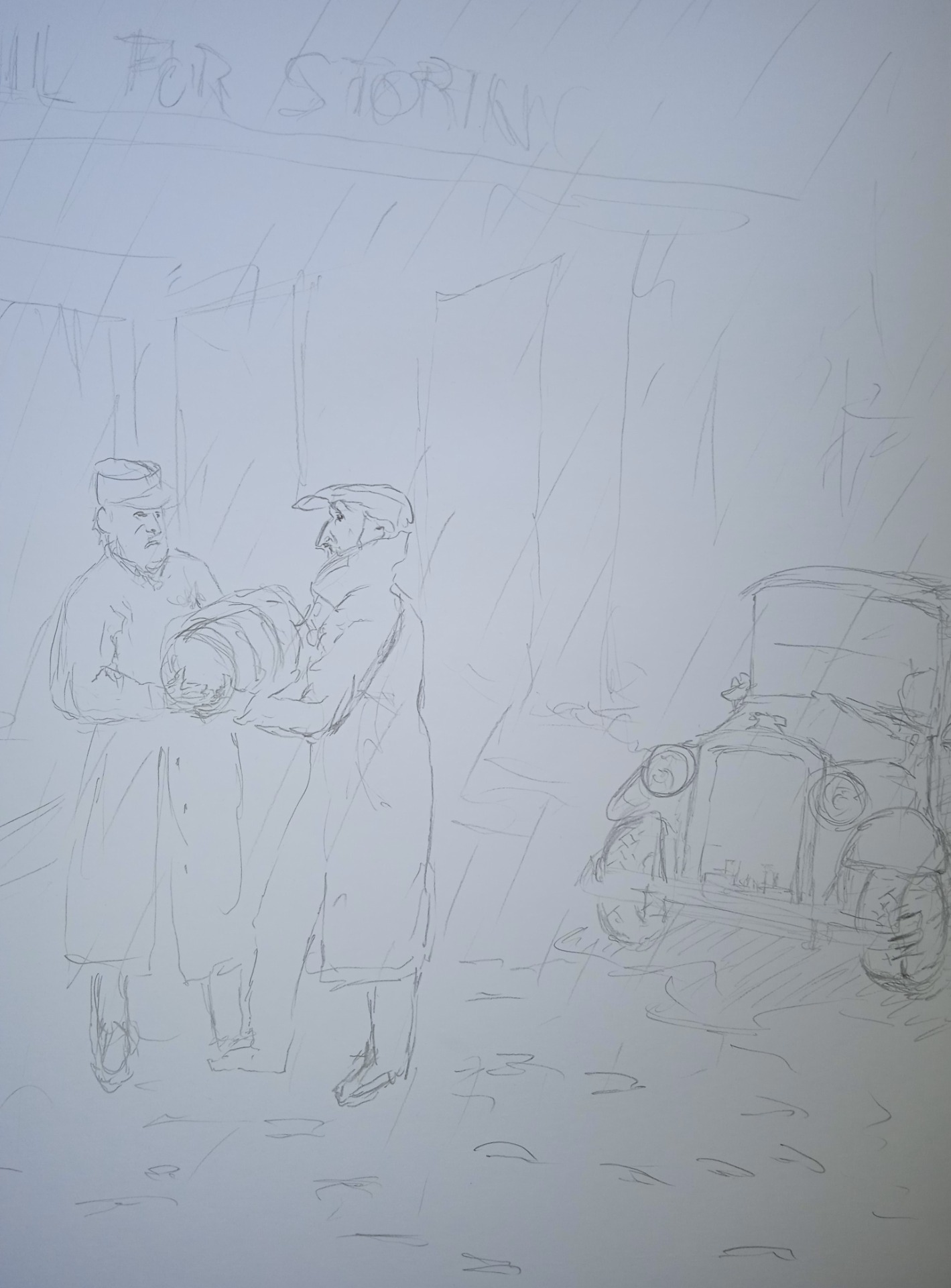 Brzy po ránu..(podle H. Gervexe), tužka, 2022, 50x70 cm, 1 110 Kč